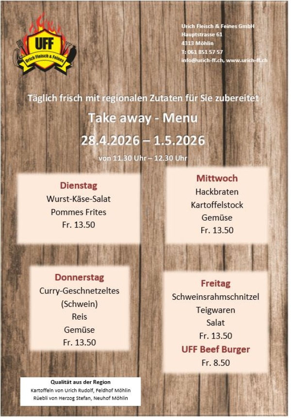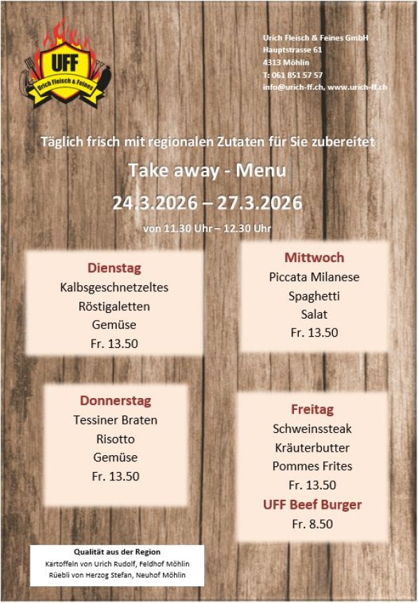 Viel Wert legen wir auf den Vieheinkauf. Das herkömmliche Fleisch stammt von Tieren aus der Region Möhlin, Zeiningen und von persönlich bekannten Bauern.