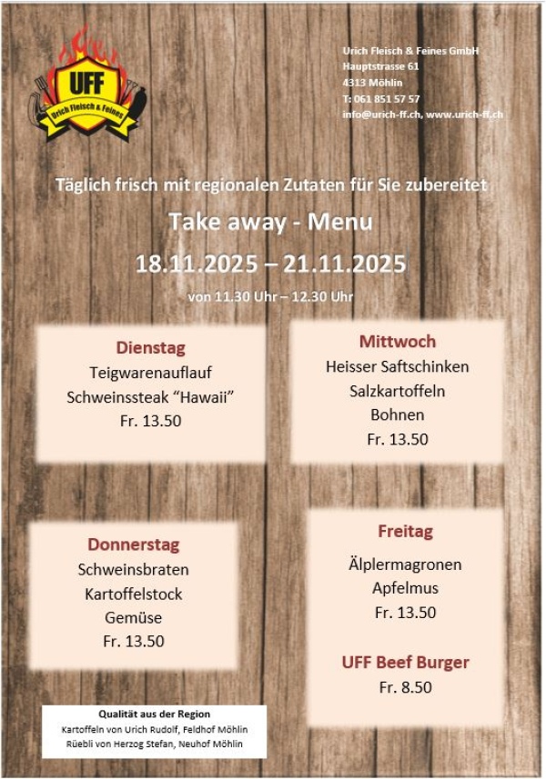 Viel Wert legen wir auf den Vieheinkauf. Das herkömmliche Fleisch stammt von Tieren aus der Region Möhlin, Zeiningen und von persönlich bekannten Bauern.