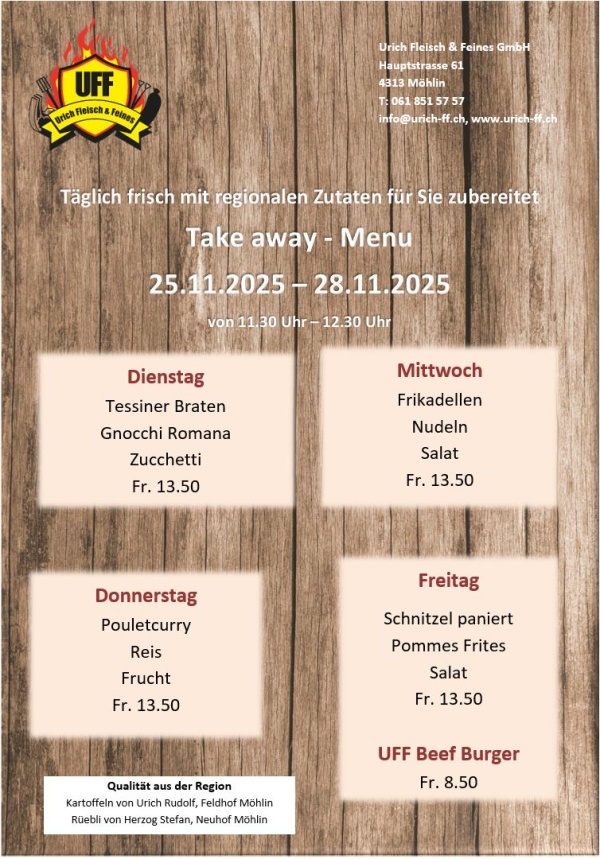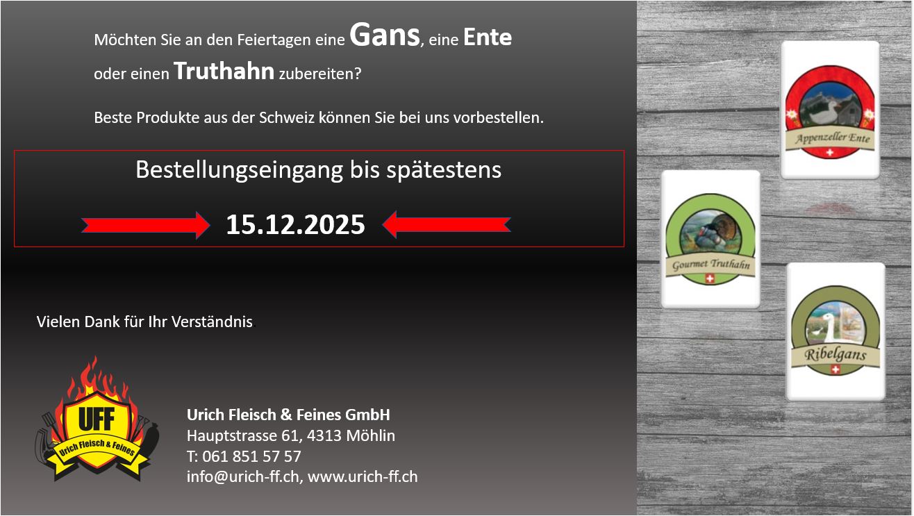 Viel Wert legen wir auf den Vieheinkauf. Das herkömmliche Fleisch stammt von Tieren aus der Region Möhlin, Zeiningen und von persönlich bekannten Bauern.