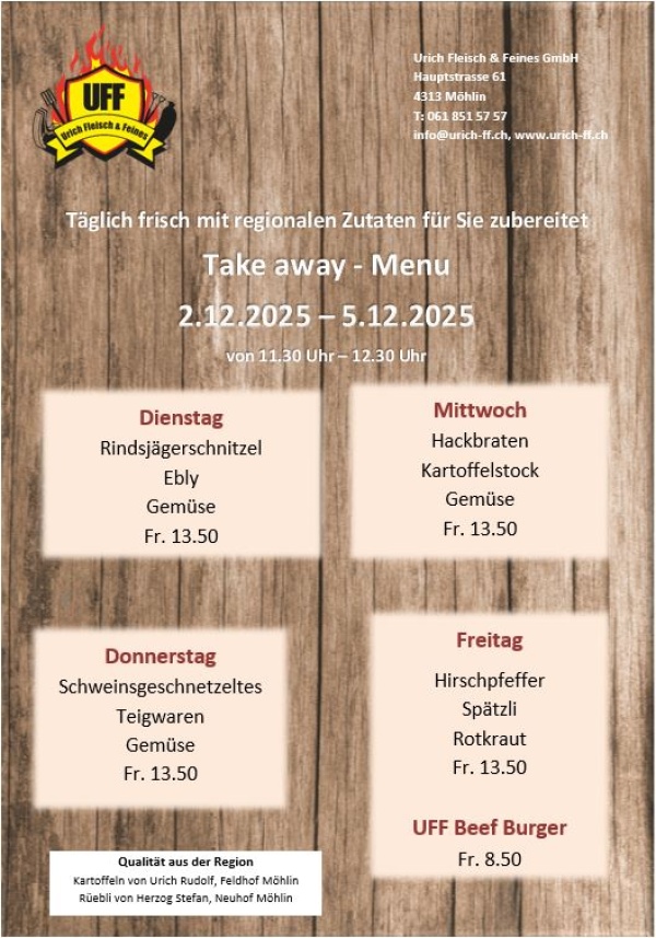 Viel Wert legen wir auf den Vieheinkauf. Das herkömmliche Fleisch stammt von Tieren aus der Region Möhlin, Zeiningen und von persönlich bekannten Bauern.