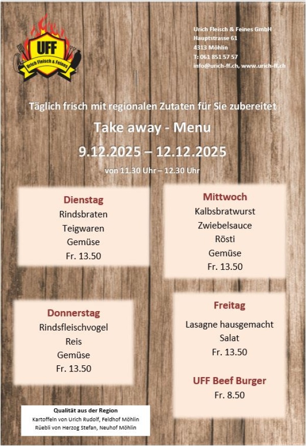 Das herkömmliche Fleisch stammt von Tieren aus der Region Möhlin, Zeiningen und von persönlich bekannten Bauern.