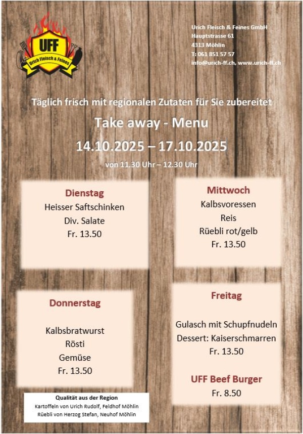Das herkömmliche Fleisch stammt von Tieren aus der Region Möhlin, Zeiningen und von persönlich bekannten Bauern.